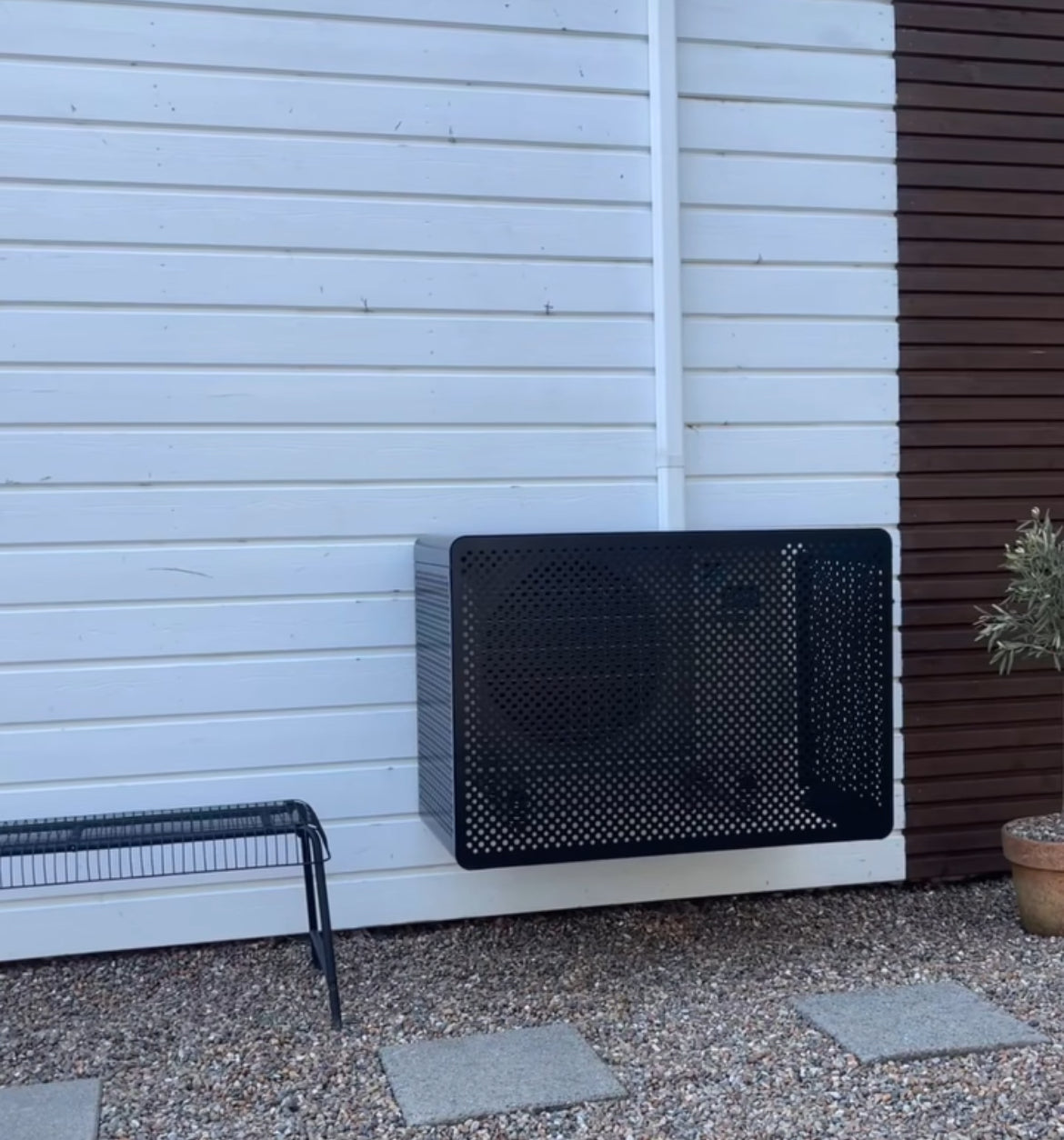 Vårat värmepumpsskydd i aluminium ger din installation ett tilltalande utseende. De avrundade hörnen ger ett mjukt och modernt uttrykk och passar både till klassisk och modern arkitektur.